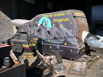 Alguma coisa aconteceu, um carro equipado com um foguete :)