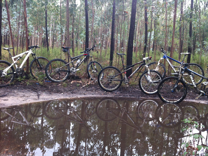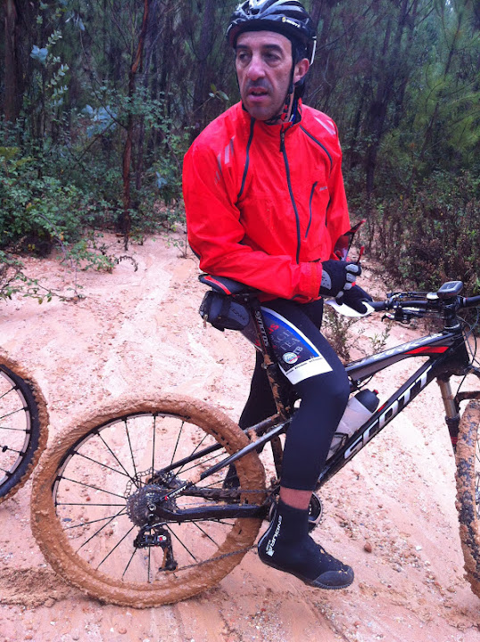 Durante a manha não choveu, mas que encontramos muita água e lama, encontramos. Não fizemos um tratamento à pele mas as bikes tiveram a sua dose de lama...